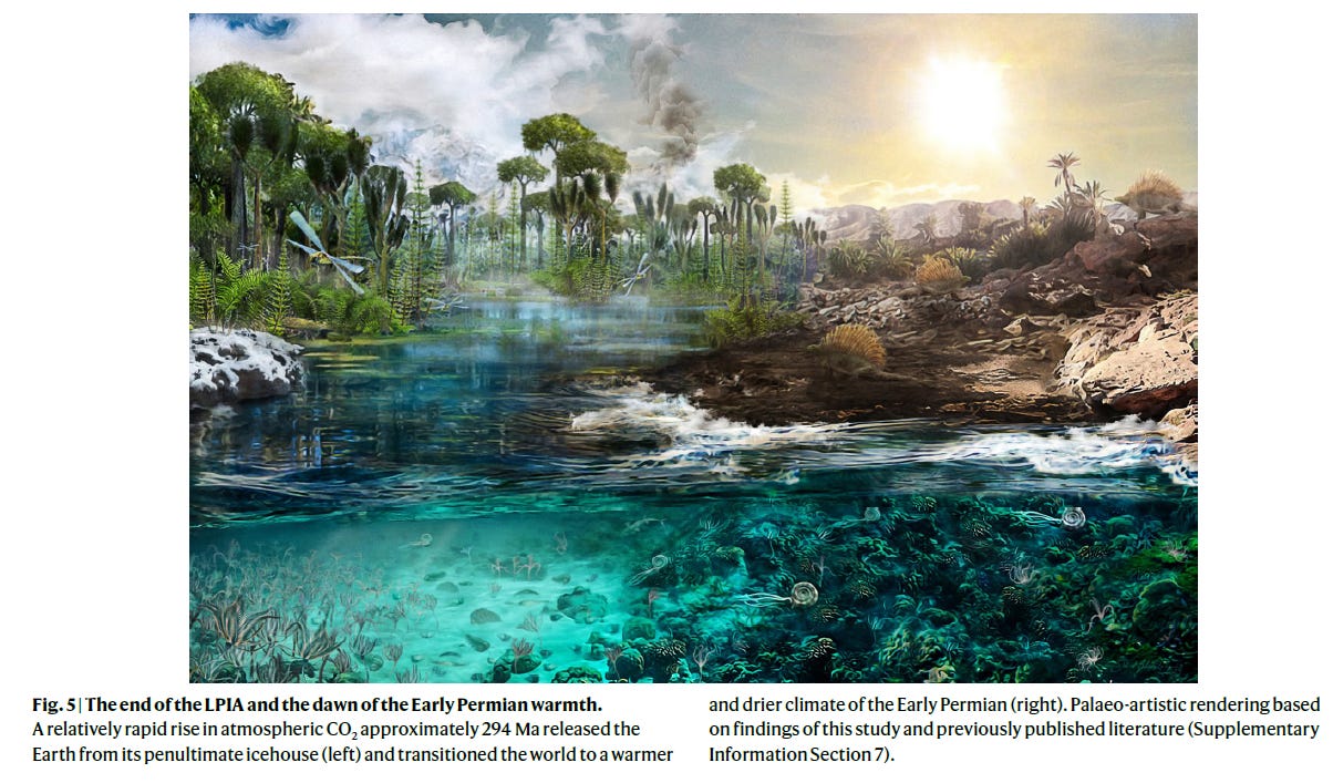 Jurikova, H., Garbelli, C., Whiteford, R., Reeves, T., Laker, G.M., Liebetrau, V., Gutjahr, M., Eisenhauer, A., Savickaite, K., Leng, M. J., Iurino, D. A., Viaretti, M., Tomašových, A., Zhang, Y., Wang, W.-Q., Shi, G. R., Shen, S.-Z., Rae, J. W. B. & Angiolini, L. Rapid rise in atmospheric CO2 marked the end of the Late Palaeozoic Ice Age. Nature Geoscience (2025).