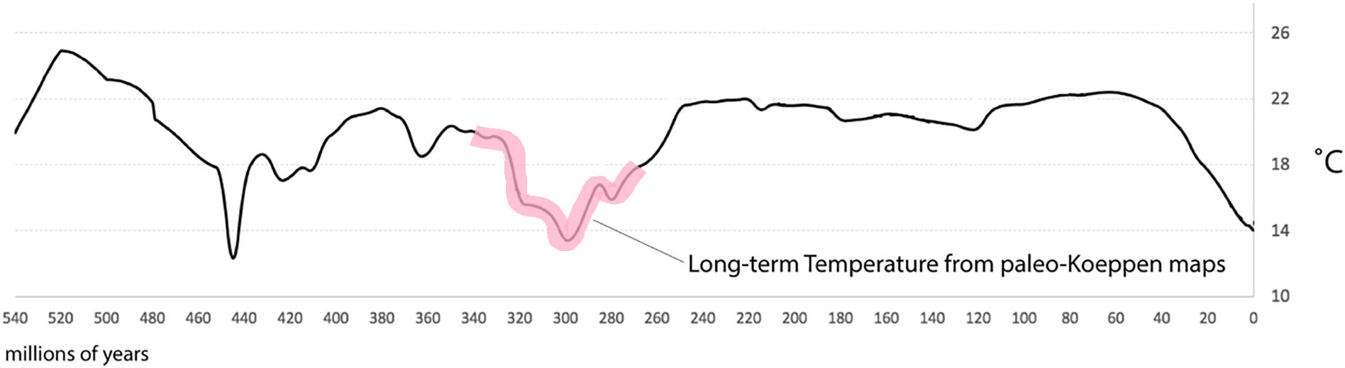 If we equipped an unprejudiced person with the qualitative knowledge that more CO2 leads to warming and asked this person to imagine the temperature evolution that accompanied these CO2 changes, a plausible guess would be that there was a temperature increase to a maximum somewhere around 290 million years ago, followed by a decrease.